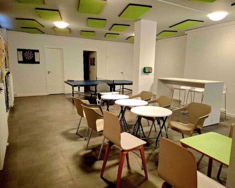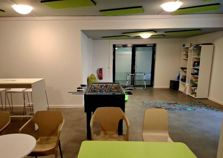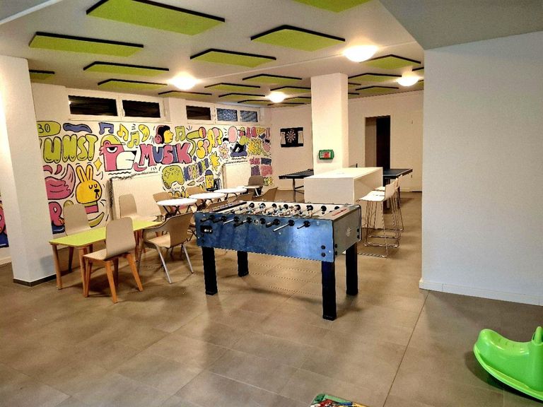 Additional Facilities: Der Raum ist funktional ausgestattet und bietet verschiedene Freizeitmöglichkeiten: Tischtennisplatte; Kicker; Spielecke; Brettspiele; Malecke