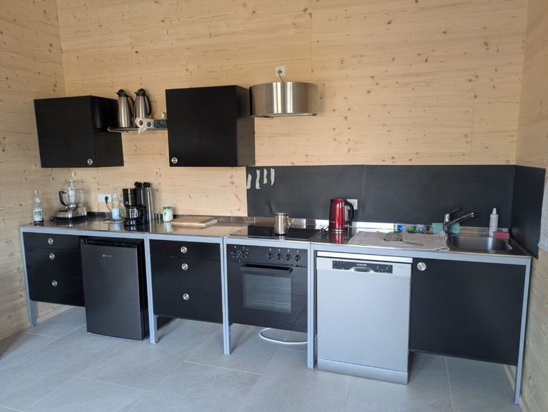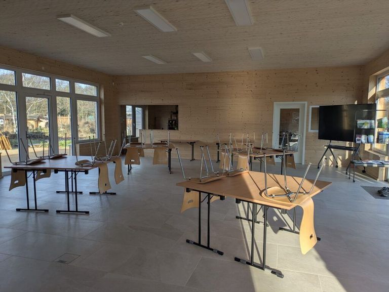 Additional Facilities: Modernes, lichtdurchflutetes Vereinshaus mitten im essbaren Waldgarten Berlin-Britz: ruhiger Veranstaltungsort im Grünen für Workshops, Seminare, Klausuren und Vereinstreffen. Ca. 100 m², flexibel bestuhlbar, bis zu 50 Personen. Pausen im Garten möglich; Parken nur zur Anlieferung.
